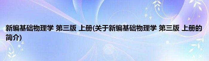 新编基础物理学第三版上册(关于新编基础物理学第三版上册的简介)