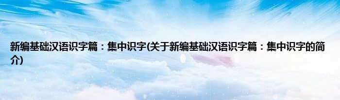 本文关于新编基础汉语识字篇:集中识字的简介就讲解完毕,希望对大家有所帮助。
