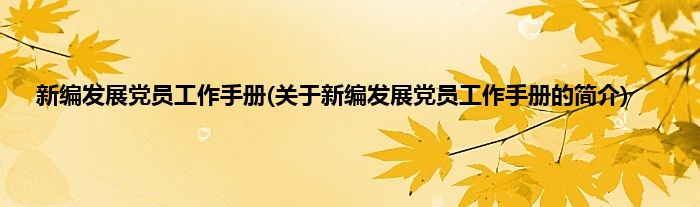 本文关于新编发展党员工作手册的简介就讲解完毕,希望对大家有所帮助。
