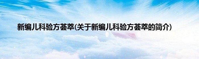 本文关于新编儿科验方荟萃的简介就讲解完毕,希望对大家有所帮助。