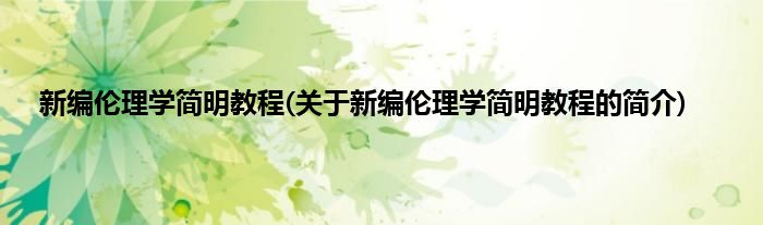 大家好,新编伦理学简明教程,关于新编伦理学简明教程的简介很多人还不知道,现在让我们一起来看看吧!