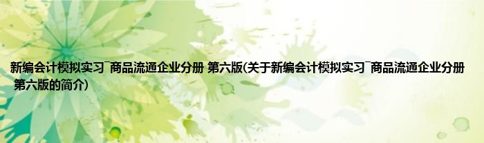 本文关于新编会计模拟实习―商品流通企业分册 第六版的简介就讲解完毕,希望对大家有所帮助。
