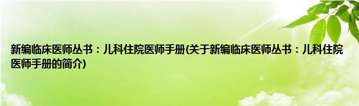 本文关于新编临床医师丛书:儿科住院医师手册的简介就讲解完毕,希望对大家有所帮助。