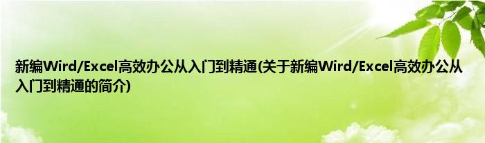 大家好,新编Wird/Excel高效办公从入门到精通,关于新编Wird/Excel高效办公从入门到精通的简介很多人还不知道,现在让我们一起来看看吧!