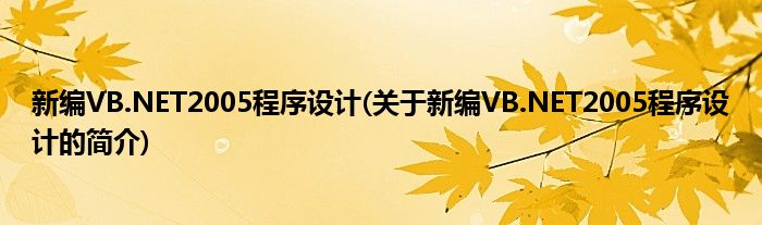 本文关于新编VB.NET2005程序设计的简介就讲解完毕,希望对大家有所帮助。