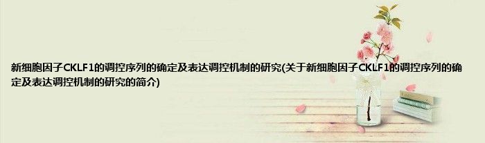 大家好,新细胞因子CKLF1的调控序列的确定及表达调控机制的研究,关于新细胞因子CKLF1的调控序列的确定及表达调控机制的研究的简介很多人还不知道,现在让我们一起来看看吧!