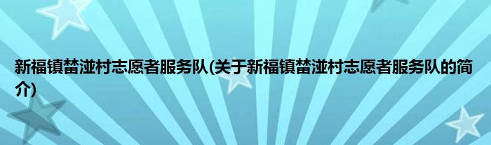 大家好,新福镇榃湴村志愿者服务队,关于新福镇榃湴村志愿者服务队的简介很多人还不知道,现在让我们一起来看看吧!