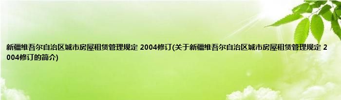 本文关于新疆维吾尔自治区城市房屋租赁管理规定 2004修订的简介就讲解完毕,希望对大家有所帮助。