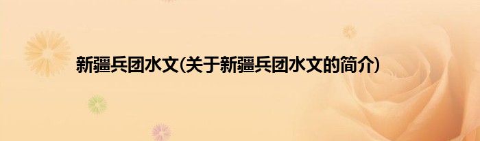 本文关于新疆兵团水文的简介就讲解完毕,希望对大家有所帮助。