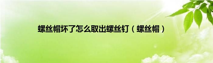 大家好,小问来为大家解答以上问题。螺丝帽坏了怎么取出螺丝钉,螺丝帽这个很多人还不知道,现在让我们一起来看看吧!