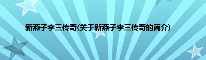 本文关于新燕子李三传奇的简介就讲解完毕,希望对大家有所帮助。