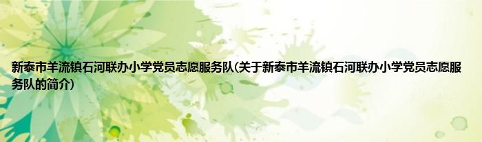 本文关于新泰市羊流镇石河联办小学党员志愿服务队的简介就讲解完毕,希望对大家有所帮助。