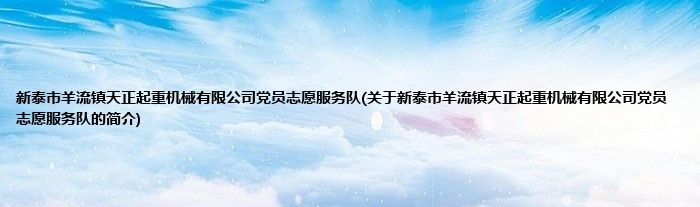 1、 新泰市羊流镇天正起重机械有限公司党员志愿服务队是由新泰市党员志愿服务总队领导下的志愿团体。