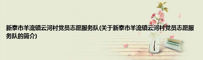 1、 新泰市羊流镇云河村党员志愿服务队是由新泰市党员志愿服务总队领导下的志愿团体。