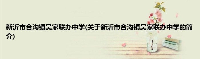 大家好,新沂市合沟镇吴家联办中学,关于新沂市合沟镇吴家联办中学的简介很多人还不知道,现在让我们一起来看看吧!