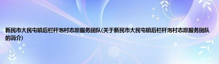 新民市大民屯镇后栏杆泡村志愿服务团队(关于新民市大民屯镇后栏杆泡村志愿服务团队的简介)