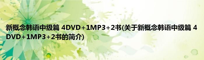 本文关于新概念韩语中级篇 4DVD+1MP3+2书的简介就讲解完毕,希望对大家有所帮助。