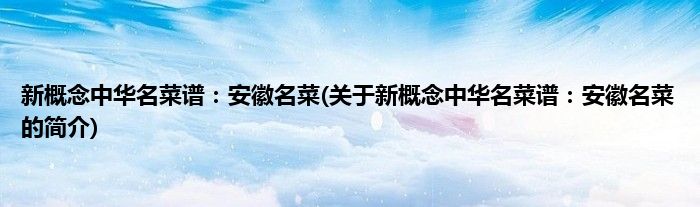 大家好,新概念中华名菜谱:安徽名菜,关于新概念中华名菜谱:安徽名菜的简介很多人还不知道,现在让我们一起来看看吧!