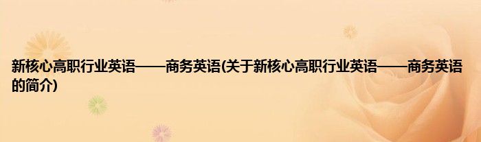 本文关于新核心高职行业英语——商务英语的简介就讲解完毕,希望对大家有所帮助。