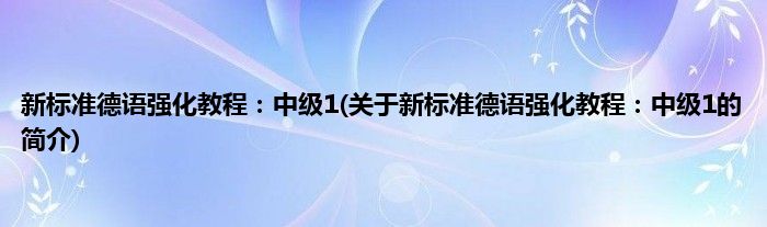 本文关于新标准德语强化教程:中级1的简介就讲解完毕,希望对大家有所帮助。