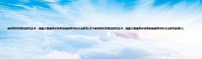 本文关于新材料科学前沿研究丛书:混凝土潮湿养护效率的电阻率评价方法研究的简介就讲解完毕,希望对大家有所帮助。