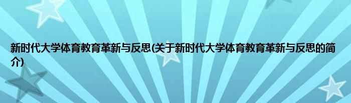 本文关于新时代大学体育教育革新与反思的简介就讲解完毕,希望对大家有所帮助。