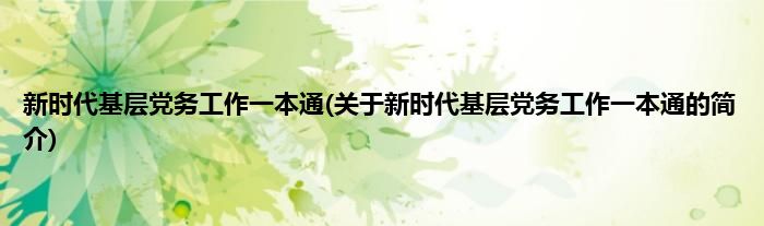 本文关于新时代基层党务工作一本通的简介就讲解完毕,希望对大家有所帮助。
