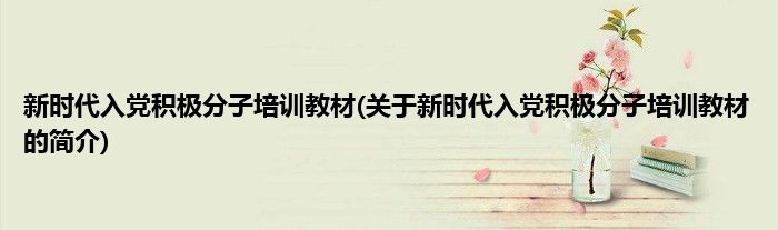 本文关于新时代入党积极分子培训教材的简介就讲解完毕,希望对大家有所帮助。