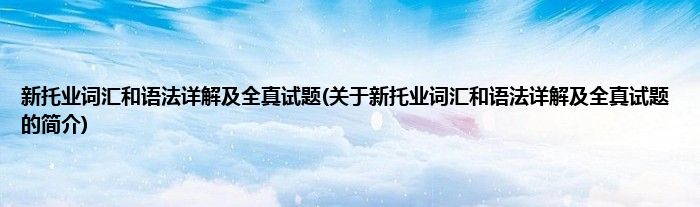 大家好,新托业词汇和语法详解及全真试题,关于新托业词汇和语法详解及全真试题的简介很多人还不知道,现在让我们一起来看看吧!
