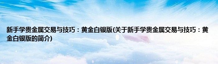 大家好,新手学贵金属交易与技巧:黄金白银版,关于新手学贵金属交易与技巧:黄金白银版的简介很多人还不知道,现在让我们一起来看看吧!