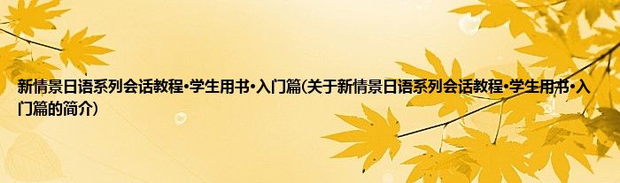 本文关于新情景日语系列会话教程·学生用书·入门篇的简介就讲解完毕,希望对大家有所帮助。