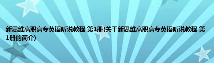 本文关于新思维高职高专英语听说教程 第1册的简介就讲解完毕,希望对大家有所帮助。