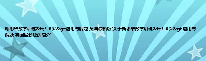 本文关于新思维数学训练<5-6岁>应用与解题 英国最新版的简介就讲解完毕,希望对大家有所帮助。