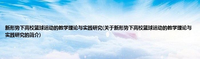 大家好,新形势下高校篮球运动的教学理论与实践研究,关于新形势下高校篮球运动的教学理论与实践研究的简介很多人还不知道,现在让我们一起来看看吧!