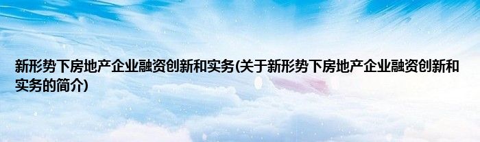 大家好,新形势下房地产企业融资创新和实务,关于新形势下房地产企业融资创新和实务的简介很多人还不知道,现在让我们一起来看看吧!
