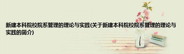 本文关于新建本科院校院系管理的理论与实践的简介就讲解完毕,希望对大家有所帮助。
