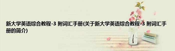 本文关于新大学英语综合教程-3 附词汇手册的简介就讲解完毕,希望对大家有所帮助。