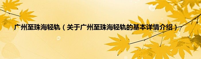 本文关于广州至珠海轻轨的基本详情介绍就讲解完毕,希望对大家有所帮助。