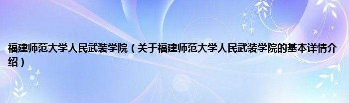 本文关于福建师范大学人民武装学院的基本详情介绍就讲解完毕,希望对大家有所帮助。