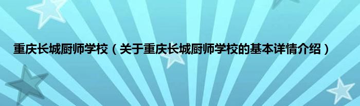 本文关于重庆长城厨师学校的基本详情介绍就讲解完毕,希望对大家有所帮助。
