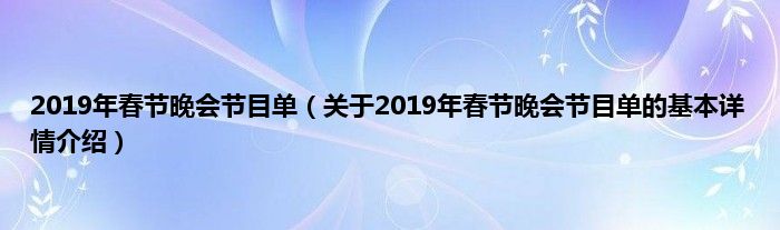 本文关于2019年春节晚会节目单的基本详情介绍就讲解完毕,希望对大家有所帮助。