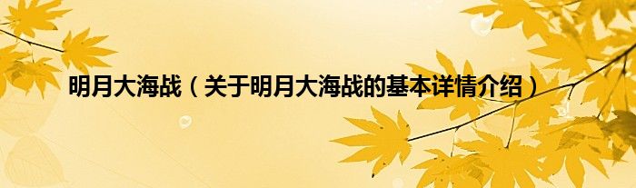 本文关于明月大海战的基本详情介绍就讲解完毕,希望对大家有所帮助。