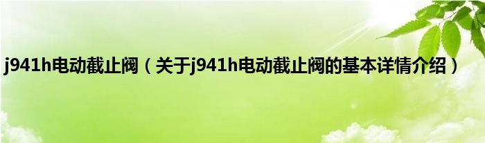 本文关于j941h电动截止阀的基本详情介绍就讲解完毕,希望对大家有所帮助。