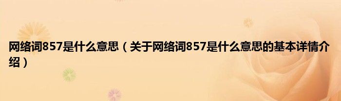 本文关于网络词857是什么意思的基本详情介绍就讲解完毕,希望对大家有所帮助。