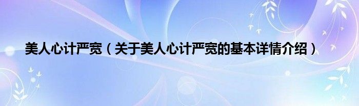 本文关于美人心计严宽的基本详情介绍就讲解完毕,希望对大家有所帮助。