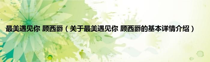 本文关于最美遇见你 顾西爵的基本详情介绍就讲解完毕,希望对大家有所帮助。