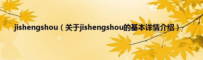 本文关于jishengshou的基本详情介绍就讲解完毕,希望对大家有所帮助。