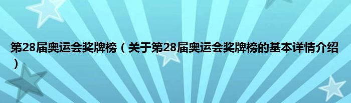 本文关于第28届奥运会奖牌榜的基本详情介绍就讲解完毕,希望对大家有所帮助。