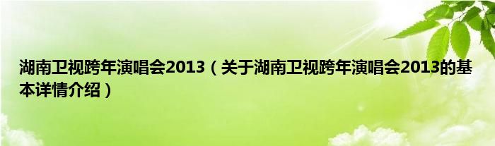 本文关于湖南卫视跨年演唱会2013的基本详情介绍就讲解完毕,希望对大家有所帮助。