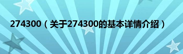 本文关于274300的基本详情介绍就讲解完毕,希望对大家有所帮助。